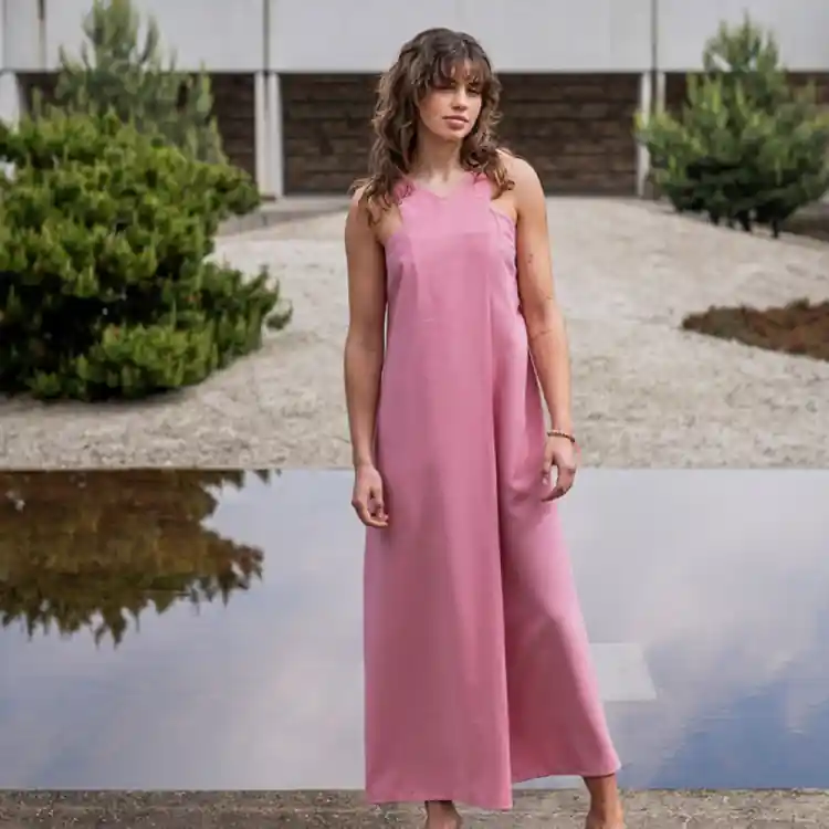 Een jurk met een twist, en dan letterlijk. Alberthe is een minimalistisch jurkje met gekruiste halteruitsnijding vooraan. De nepen in de zijnaad zorgen voor een mooie pasvorm en de linkerzijnaad is voorzien van een blinde ritssluiting waardoor je haar eenvoudig aantrekt.