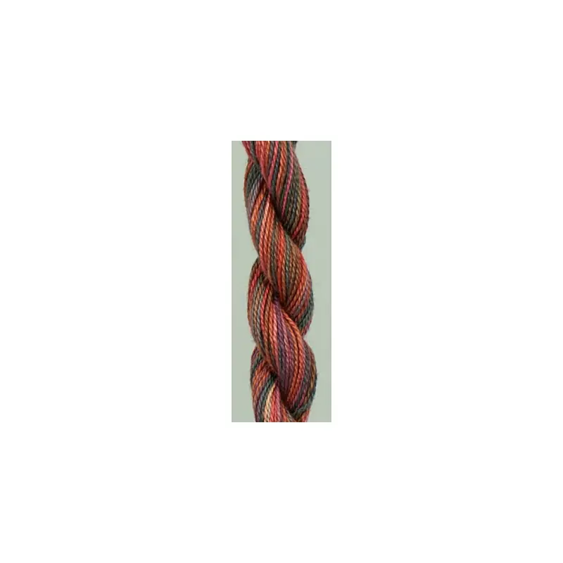 100% katoenen perlégaren (dikte #8) en handmatig in overlopende kleuren geverfd.