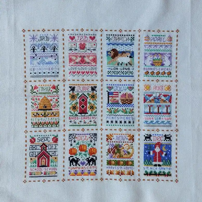Afmetingen van het lapje waarop is geborduurd 42 x 38 cm.