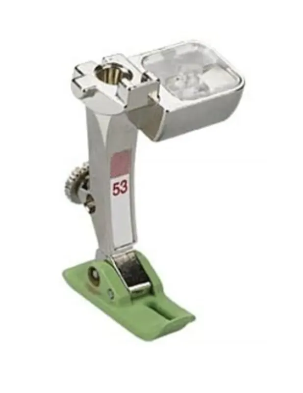 De Stiksteekvoet met glijzool #53 is speciaal bestemd voor het naaien van slecht glijdend materiaal zoals leer, kunststof of zeildoek. De voet glijdt licht over het materiaal en duwt het daarbij goed aan. Daardoor garandeert de Stiksteekvoet met glijzool #53 exacte naden zonder vouwtjes of rimpels in dikke en dunne materialen . De voet heeft bovendien twee “tenen” van verschillende breedtes, die als geleidingshulp dienen voor verschillende naadbreedtes. Dankzij de bouwwijze en bijzondere eigenschappen is de Stiksteekvoet met glijzool #53 ook heel geschikt voor doorstikken. Ontdek nu de Stiksteekvoet met glijzool #53 als professioneel hulpmiddel voor kleine en grote naaiprojecten!