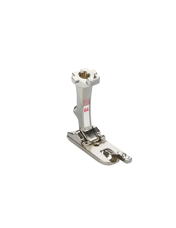 Door de geleider in de voetzool wordt de omgeslagen stof naar het steekgat geleid. Hier wordt het naaiwerk met een stiksteek tot een 4 mm brede, stabiele zoom genaaid. De afgeronde zoom glijdt vervolgens lichtjes onder de voet door, waardoor u vlot kunt naaien. Geniet nu van comfortabel werken met de smalle zoomvoet voor stiksteek #64 en naai duurzame zomen.