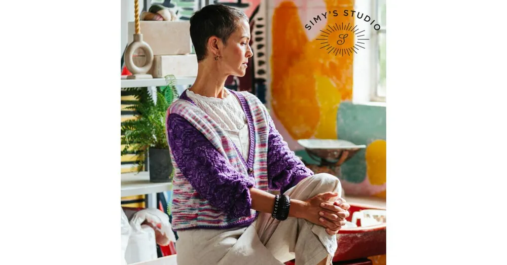 Jo Allport ontwierp deze elegante look voor het Simy’s Studio Premier Yarn Collection 01 NL. Elegant, betoverend én comfortabel, zo zou je dit gebreide vest het beste kunnen omschrijven. Jo liet zich inspireren door de levendige kleuren die in de natuur te vinden zijn.