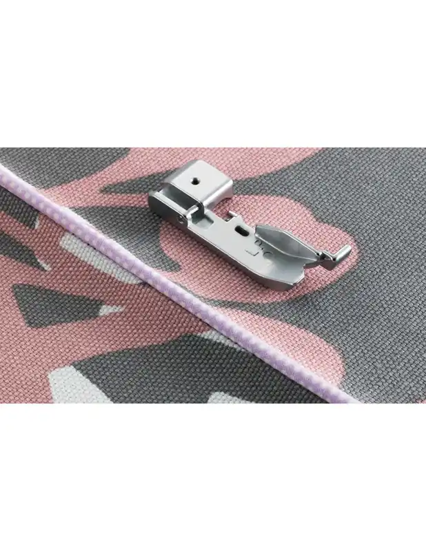 Geleidt de paspelband en maakt het gebruik van spelden overbodig omdat de paspelband en de stof samen door de overlocker gaan.