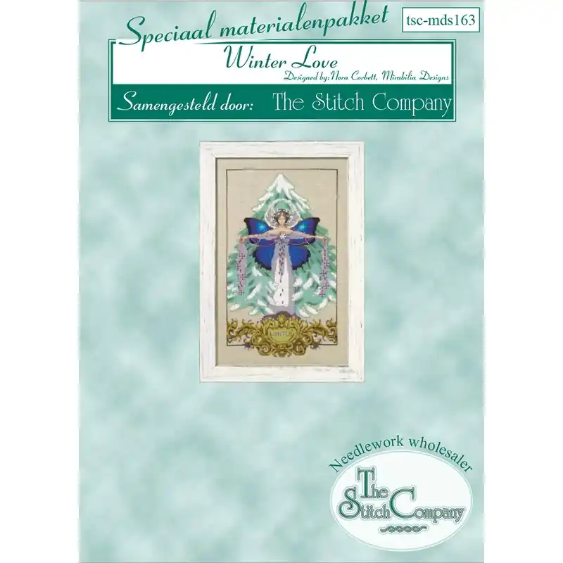 Pakketje met de originele Mill Hill kralen en treasures, Kreinik glittergarens en Waterlilies zijdegarens voor patroon md-163.