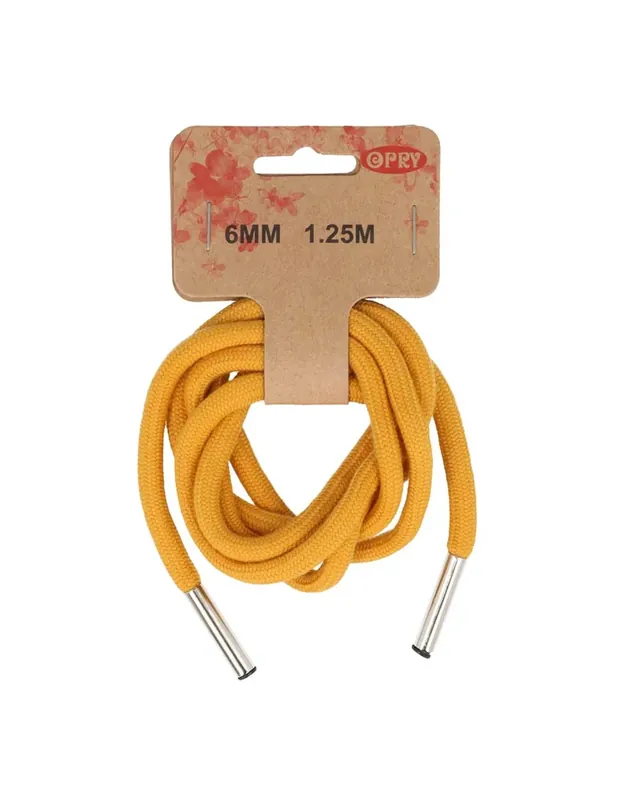Dit mooie hoodiekoord is de perfecte finishing touch voor een zelfgemaakt capuchonvest of zelfgemaakte hoodie. Ook ideaal ter vervanging van een kapot of verloren hoodiekoord in een bestaand kledingstuk. Het koord heeft aan de uiteinden een metalen koordeinde, om te voorkomen dat het koord gaat rafelen. Het koord is 6mm breed en 1,25 meter lang