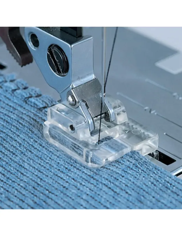 Met deze voet kunt u zware jerseystoffen of imitatiebont tegelijkertijd naaien en afwerken.