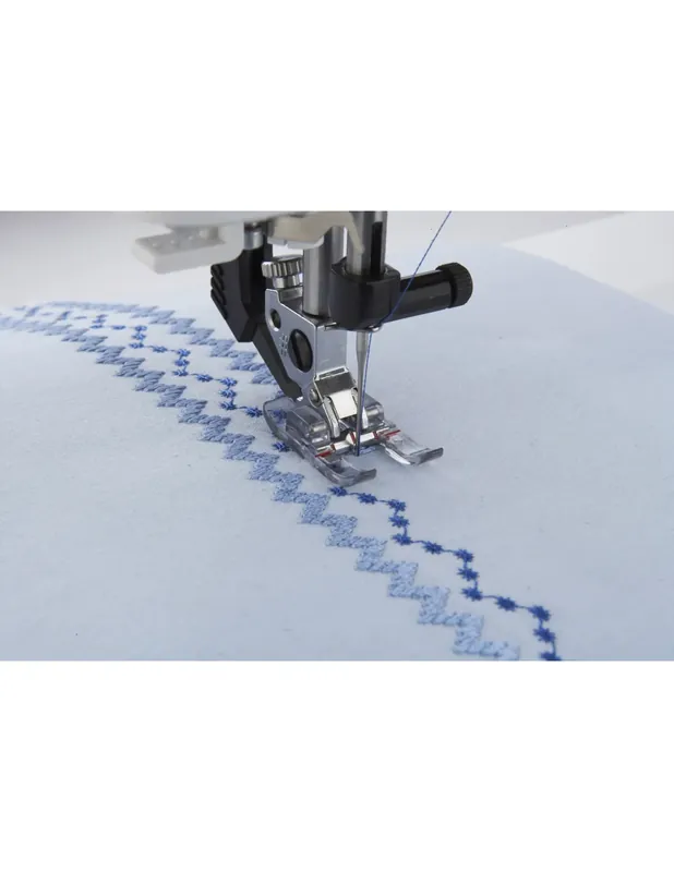 Voor het naaien van applicaties. Het heldere zicht op het naaigebied en de uitsparing aan de onderzijde van de voet zorgen voor een optimaal stoftransport.