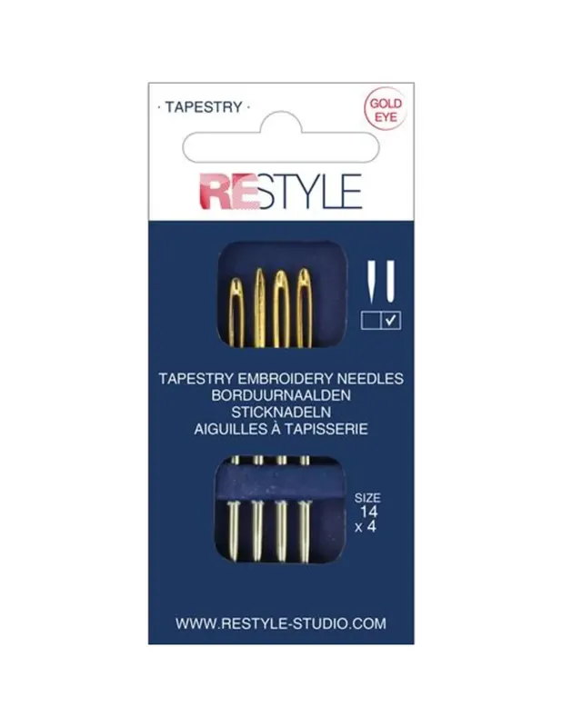 Het gouden oog maakt het gemakkelijk om het garen door het oog te rijgen en door het extra grote oog kan zowel borduurgaren als wol gebruikt worden. De stompe punt maakt het mogelijk dat de naald soepel door stramiengaas, canvas, aïda en los geweven stoffen kan glijden, zonder ze te beschadigen. Ze zijn daardoor uitstekend geschikt voor telborduurwerk, tapisserie en borduren op breisels.