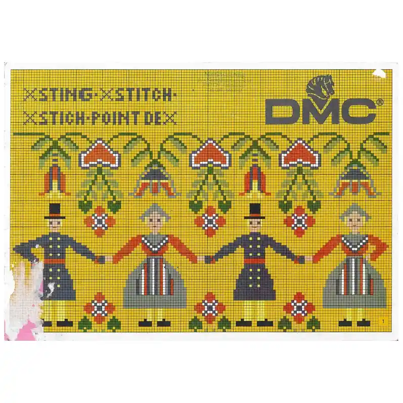 beschadiging in hoek linksonder, waar een stikker heeft gezeten