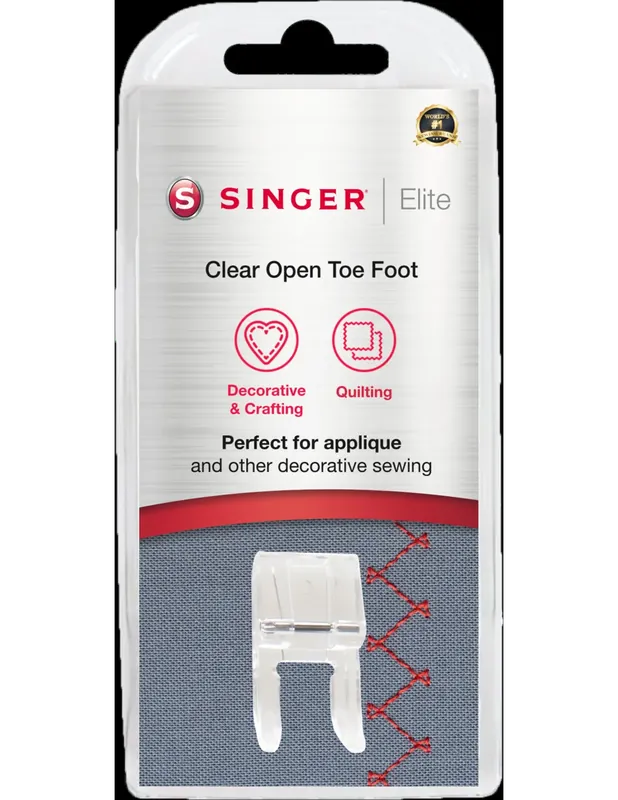 Naai uw applicatie vast met de applicatievoet van SINGER. Selecteer de zigzagsteek en verlaag de steeklengte zodat u een mooie dichte applicatiesteek krijgt. De korte tenen van de applicatievoet zorgen voor een goed zicht op uw werk. Stik over alle randen om rafels te voorkomen en gebruik de naaldstop (mits beschikbaar op uw machine) om strakke hoeken en bochten te maken.