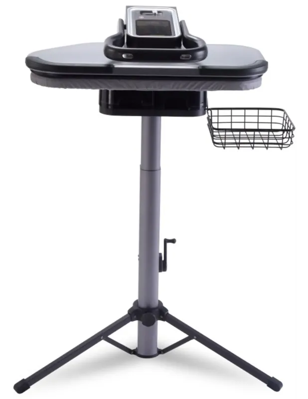 In hoogte verstelbaar. De standaard is in hoogte verstelbaar van 66 cm tot 84 cm. Gebruik uw stoompers comfortabel, zittend of staand. De driepoot kan worden in geklapt voor eenvoudig opbergen.