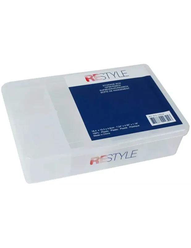 Deze ReStyle opbergbox van 18,4 x 12,5 cm en 4,6 cm hoog is ideaal voor het bewaren van kleine materialen en accessoires. De box is gemaakt van transparant plastic, waardoor je altijd snel kunt zien wat er in zit. De box is voorzien van 6 kleine vakjes en 1 groter vak, ideaal voor het organiseren van verschillende items.