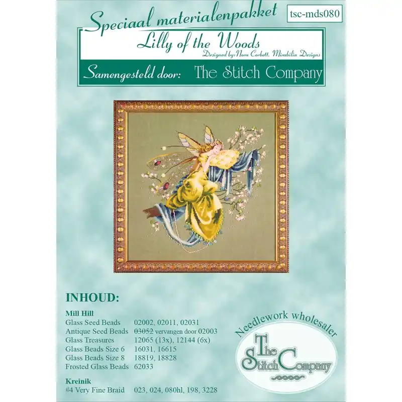 Pakketje met de originele Mill Hill kralen en treasures en Kreinik glittergarens voor patroon md-080.