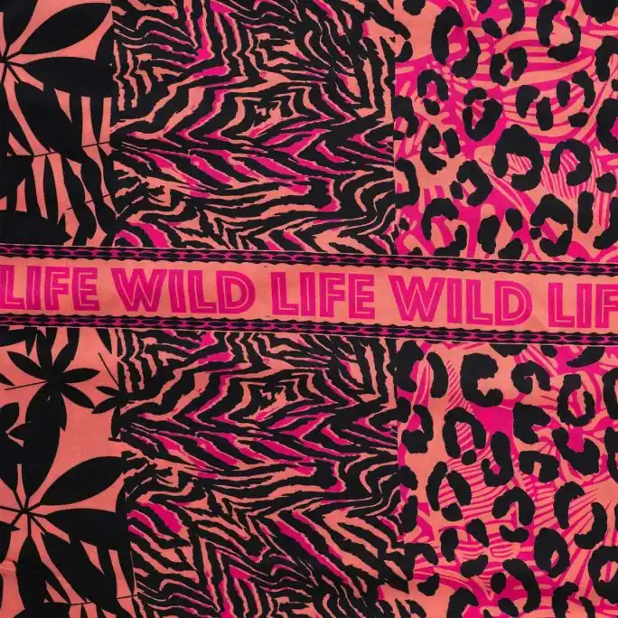 Laat je creativiteit de vrije loop met het opvallende Viscose Paneel “Ibiza Wild Life”! Dit kleurrijke stofpaneel van 215 x 150 cm combineert levendige dier- en botanische prints in een mix van fuchsia, zalmroze en zwart – perfect voor de zomer. Gemaakt van 100% luchtige viscose voile (90 g/m²), voelt de stof soepel en licht aan, ideaal voor tunieken, rokken, jurken of zomerse sjaals.