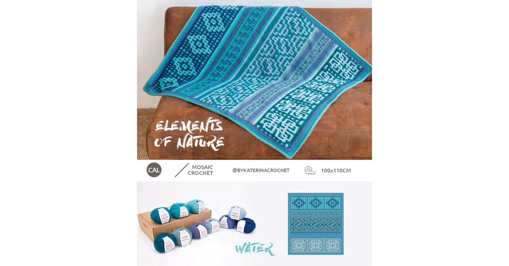 De Elements of Nature CAL werd oorspronkelijk gelanceerd in oktober 2020 en is ontworpen door @bykaterinadesigns. De deken is opgebouwd uit vier delen, elk geïnspireerd op een natuurelement: lucht, water, vuur en aarde. Je haakt met behulp van de mozaïek haaktechniek – een prachtige en verrassende methode om geometrische patronen tot leven te brengen. In totaal bestaat het ontwerp uit 20 vierkanten met afwisselende steken en een Grieks-geïnspireerd patroon.