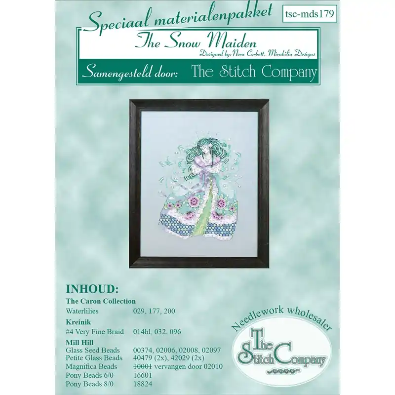 Pakketje met de originele Mill Hill kralen, Waterlilies zijdegarens en Kreink glittergaren voor patroon md-179.
