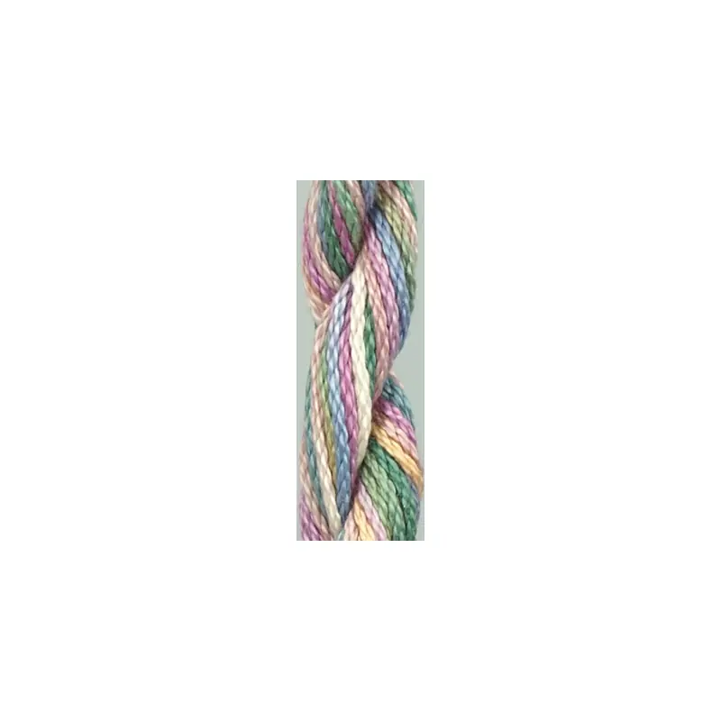 3-draads 100% katoenen perlégaren (dikte #5) en handmatig in overlopende kleuren geverfd.