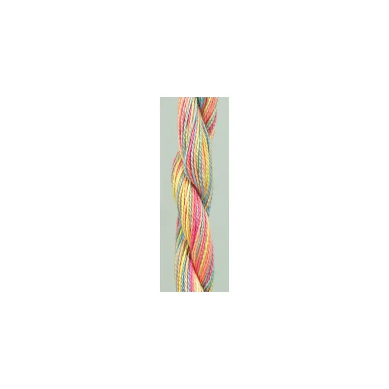 100% katoenen perlégaren (dikte #8) en handmatig in overlopende kleuren geverfd.