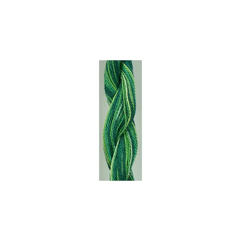 100% katoenen perlégaren (dikte #8) en handmatig in overlopende kleuren geverfd.